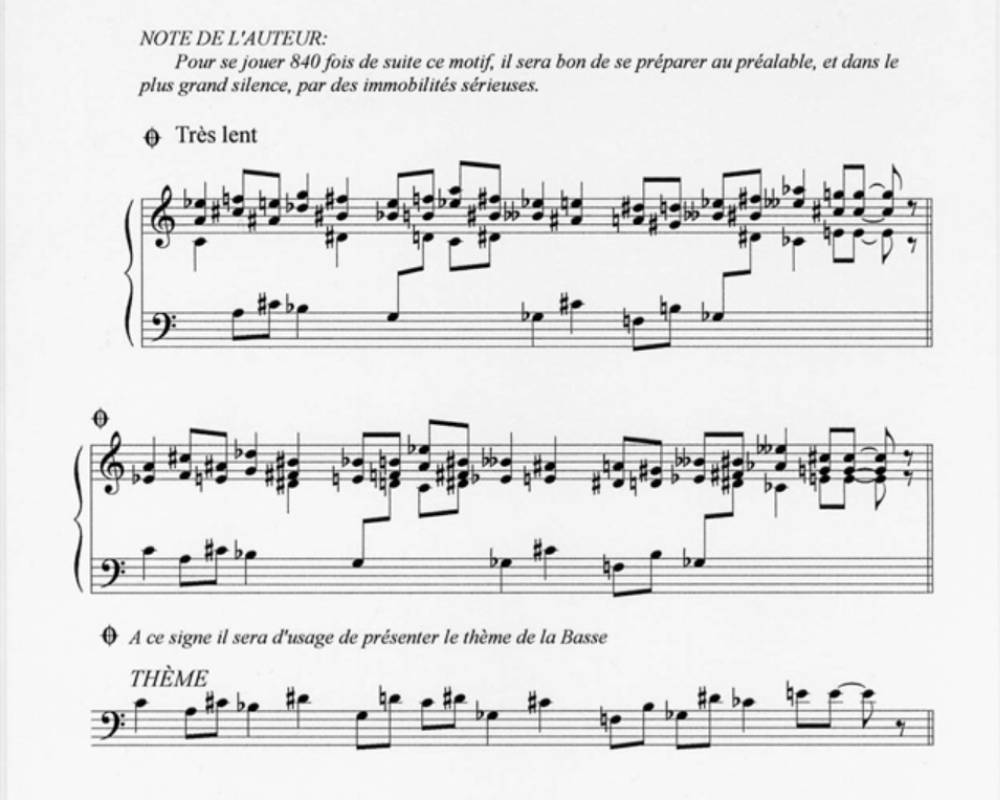 Composed in 1893, Vexations consists of a single page of music—three variations of a short theme—that includes an instruction to repeat the sequence 840 times. Satie never specified instrumentation or tempo, though he annotated the score with a now-famous recommendation: “In order to play this motif 840 times in succession, it would be advisable to prepare oneself beforehand, and in the deepest silence, by serious immobilities.”